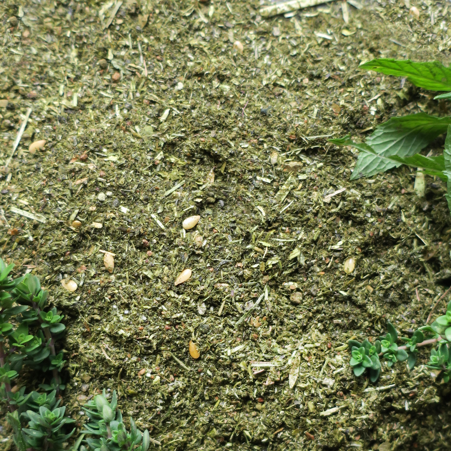 Grünmehl, Sonnenblumenextraktionsschrot, Leinsaat(thermisch aufgeschlossen), Rapsextraktionsschrot, Bierhefe, Leinsamen hell, Bockshornkleesamen, Thymian, Anis, Rosmarin, Süßholzwurzel, Fenchel, Pfefferminzblätter, Natriumchlorid, Lignocellulose, Rapsöl, kalkhaltige Meeresalgen, Calciumcarbonat, Brennessel, Löwenzahn, Birkenblätter