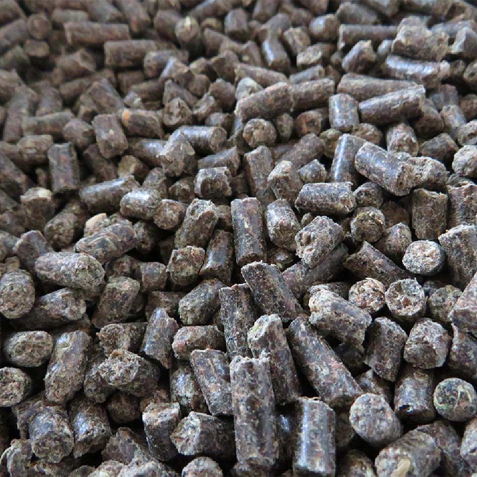 Sonnenblumenextraktionsschrot, Leinsaat (thermisch aufgeschlossen), Rapsextraktionsschrot mit aufgeschlossenem Protein, thermisch behandelt, Grünmehl, Bierhefe, Kartoffeleiweiß, Lignocellulose, Johannisbrotschrot