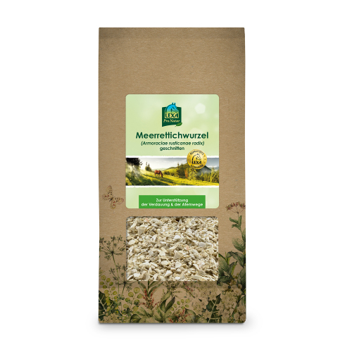 LEXA Meerrettichwurzel kann bei Vorliegen einer Infektion gezielt als Kur gefüttert werden. Außerdem kann Meerrettich gegen Pilze und Dassellarven wirken.